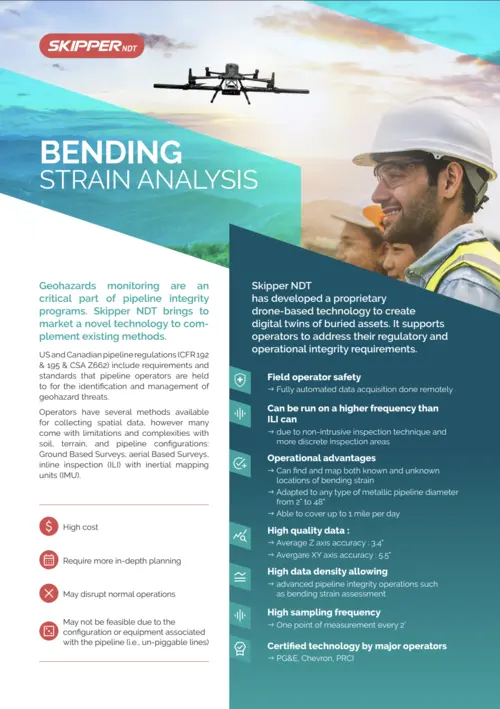 Skipper NDT offers a cutting-edge drone-based technology designed specifically for quantifying below-ground pipeline positions. Our solution addresses regulatory and operational integrity requirements with the following advantages: