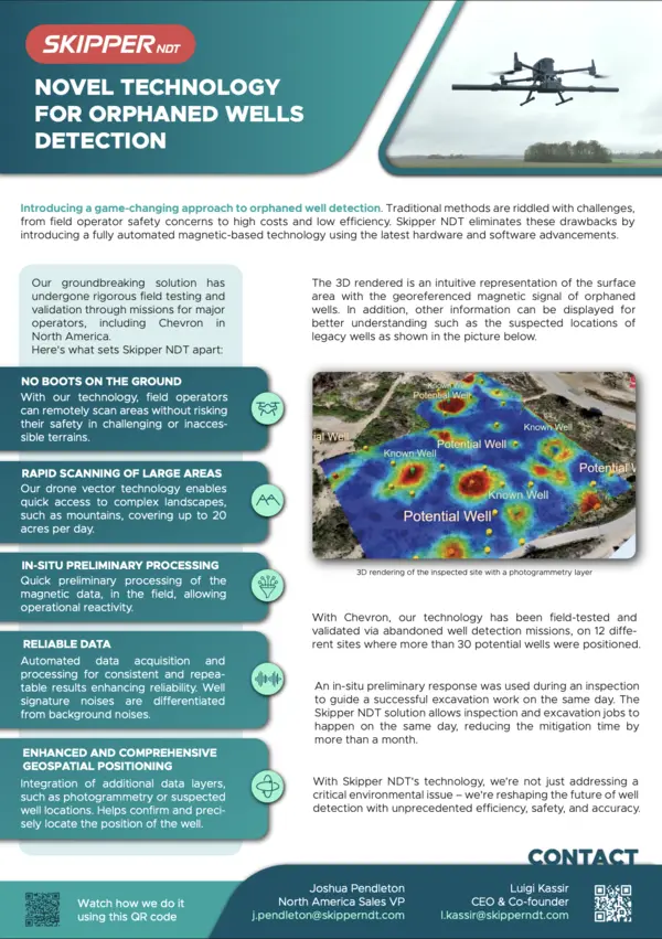 Skipper NDT’s Argos sensor utilizes cutting-edge hardware and software for automated magnetic-based technology, ensuring precise identification of abandoned wells and pipelines.